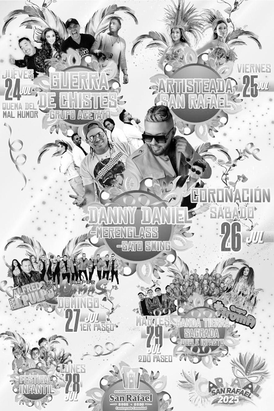 El comité organizador del Carnaval de San Rafael 2025 presentó oficialmente la cartelera de la fiesta carnavalesca, la cual, está llena de tradición y promueve el entretenimiento familiar, confirmó Gabriel Thomas Armida, presidente del Comité Organizador. La festividad carnestolenda contara con una gran variedad de géneros musicales y la calidad de los artistas que se presentaran de manera gratuita en los seis días que se realizará esta tradicional fiesta de San Rafael. Thomas Armida comentó que el carnaval comenzara el jueves 24 de julio con el tradicional “quema de mal humor”, para esa fecha se presentara el elenco de Guerra de Chistes, además del grupo Acetato, originario del puerto de Veracruz.