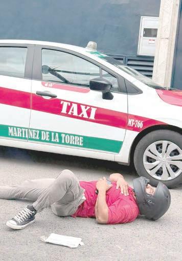Bañado de sangre en el rostro, así como golpes contusos, terminó un peatón al ser atropellado por un imprudente moto-repartidor que presuntamente se pasó la luz roja del semáforo.