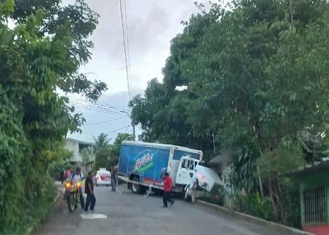 Un camión refresquero se quedó sin frenos cuando circulaba sobre la colonia Mateo Acosta, y terminó impactándose con una vivienda.