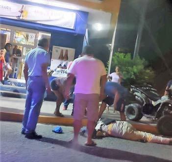 El percance se suscitó alrededor de las 21:00 horas sobre la avenida Justo Sierra, a la altura de la tienda “Mi Bodega Aurrerá”, cuando el conductor de una cuatrimoto FT 150 color camuflaje perdió el control del manubrio, ocasionando que el frágil vehículo volcara y él se impactara contra el pavimento, quedando inconsciente al golpearse la cabeza.