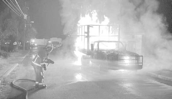 Envuelta en llamas se vio una camioneta en una de las calles de la localidad La Piedrilla, lugar donde propios y extraños temían que fuera a explotar y causar daños a sus viviendas. El siniestro se registró a la 04:15 horas de la madrugada de este martes, sobre la calle
