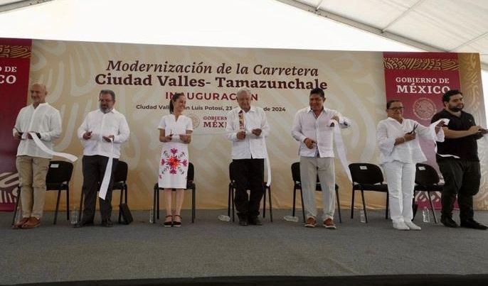 Sheinbaum acompañó al Presidente Andrés Manuel López Obrador a la inauguración de un tramo carretero que va de Tamazunchale a Ciudad Valles.