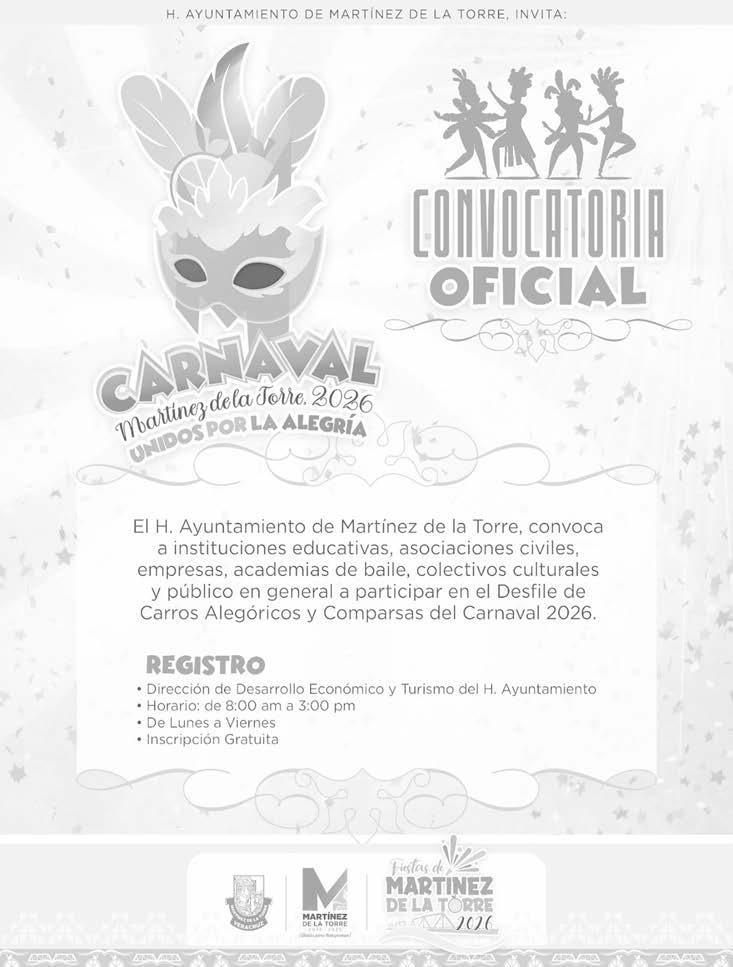 Gerente de Marketing L.C. Laura Ortiz Torres EL HERALDO DE MARTINEZ es una publicación diaria de lunes a sábado. Jueves 26 de Febrero de 2026 | Año 7 | No. 2458 | Editor responsable Ing. Eduardo Sánchez Macías. Número de certificado de Reserva de Derecho al Uso Exclusivo del Titulo 04-2017-090412182000-101. Certificado de Licitud 17081. Certificado de Licitud de Contenido 17081. Domicilio de la publicación, impreso y distribuido por Empresas Franes, S.A. de C.V., con domicilio en Boulevard Rafael Martínez de la Torre No. 168. Esq. 22 de Noviembre, Col. San Manuel, Martínez de la Torre, Ver., C.P. 93600. Tels.:(01 232) 324-85-46, 324-4676, 373-15-95, Fax 324-85-47