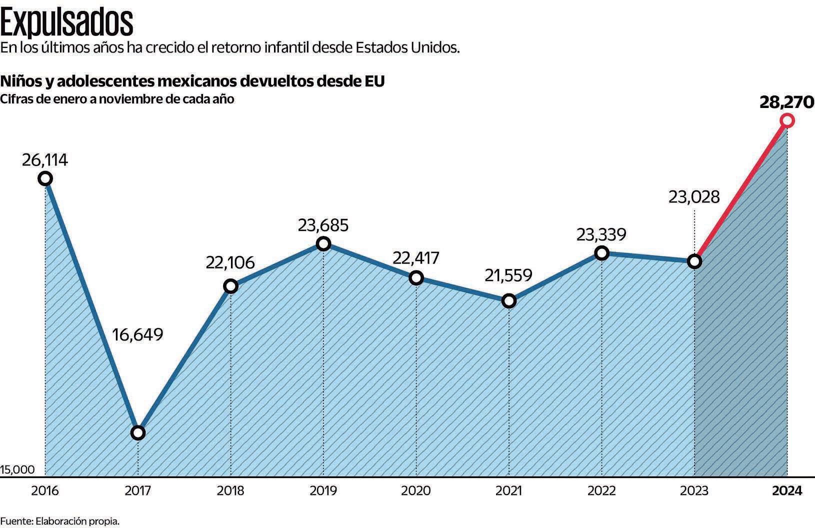 Sin embargo, en 2024 las devoluciones de infantes y adolescentes se dispararon al llegar a 28 mil 270.