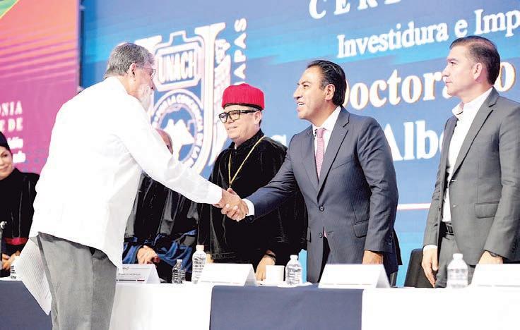 El gobernador Eduardo Ramírez Aguilar asistió a la ceremonia solemne de Investidura e Imposición de Insignias del Doctorado Honoris Causa que otorgó la Benemérita Universidad Autónoma de Chiapas (Unach) al profesor e investigador emérito del Instituto Nacional de Antropología e Historia (INAH), Antonio García de León y Griego; al arqueólogo y escritor guatemalteco, Carlos Alberto