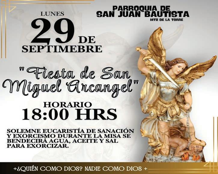 Con motivo de San Miguel Arcángel, la parroquia San Juan Bautista invita a su misa de sanación y exorcismo que se realizará el próximo lunes 29 de septiembre a las 18:00 horas.