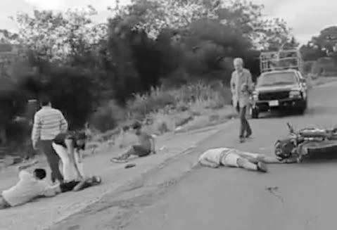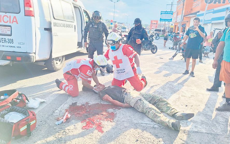 Aún con el casco puesto, la víctima quién vestía un pantalón verde tipo militar, así como una playera de color negro y zapatos tipo choclos, quedó a poca distancia de su motocicleta, gravemente herido, inconsciente y vomitando sangre en abundancia.