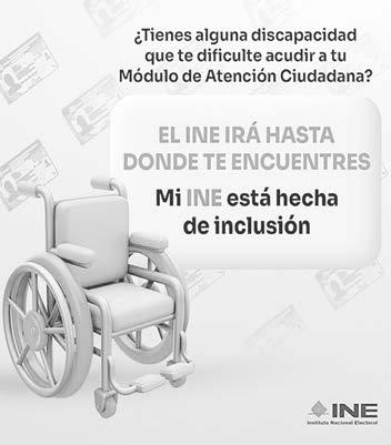 En caso de que algún ciudadano tenga una enfermedad o alguna limitación física, Evelyn Mar Liuat, Vocal de Registro Federal de Electores de la 07 Junta Distrital del INE, indicó, que personal del INE puede acudir a su domicilio para realizar el trámite que necesite.