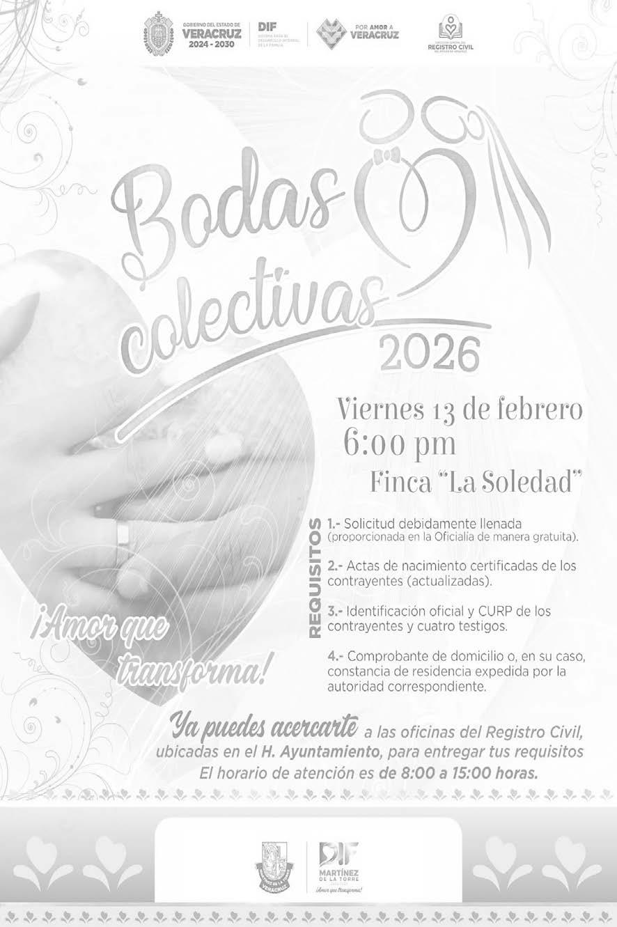 HERALDO DE MARTINEZ es una publicación diaria de lunes a sábado. Miércoles 28 de Enero de 2026 | Año 7 | No. 2433 | Editor responsable Ing. Eduardo Sánchez Macías. Número de certificado de Reserva de Derecho al Uso Exclusivo del Titulo 04-2017-090412182000-101. Certificado de Licitud 17081. Certificado de Licitud de Contenido 17081. Domicilio de la publicación, impreso y distribuido por Empresas Franes, S.A. de C.V., con domicilio en Boulevard Rafael Martínez de la Torre No. 168. Esq. 22 de Noviembre, Col. San Manuel, Martínez de la Torre, Ver., C.P. 93600. Tels.:(01 232) 324-85-46, 324-4676, 373-15-95, Fax