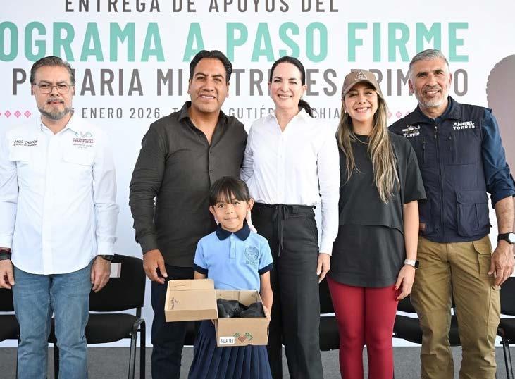 El gobernador Eduardo Ramírez Aguilar visitó la Escuela Primaria Mi Patria es Primero, en Tuxtla Gutiérrez, donde encabezó la entrega de apoyos del programa A Paso Firme, iniciativa orientada a fortalecer el bienestar y la seguridad de la niñez chiapaneca mediante la dotación de tenis escolares, con el propósito de mejorar su comodidad y garantizar condiciones dignas para su desarrollo integral. Durante su intervención, explicó que su gobierno impulsa diversas acciones para brindar a las y los estudiantes mayor seguridad en sus trayectos y motivarlos en su aprendizaje y actividades diarias. “Hoy estamos haciendo