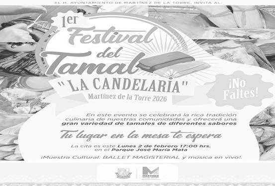 El H. Ayuntamiento de Martínez de la Torre invita a la ciudadanía en general a participar en el Primer Festival del Tamal “La Candelaria”, un evento que tiene como objetivo celebrar y preservar la tradición culinaria de las comunidades del municipio y la región.