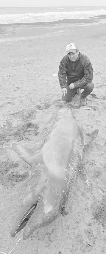 Localiza el Director General de Fundación Yépez, Ricardo Yépez Gerón, un delfín sin vida varado en la zona de playas.
