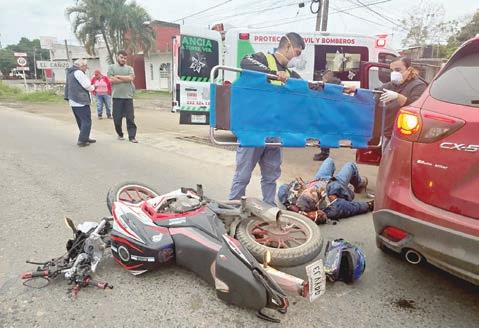 El lesionado fue identificado como Alex M. C., de 39 años de edad, quien presentó una probable fractura en la clavícula derecha tras impactarse contra una camioneta particular mientras circulaba a bordo de una motocicleta.