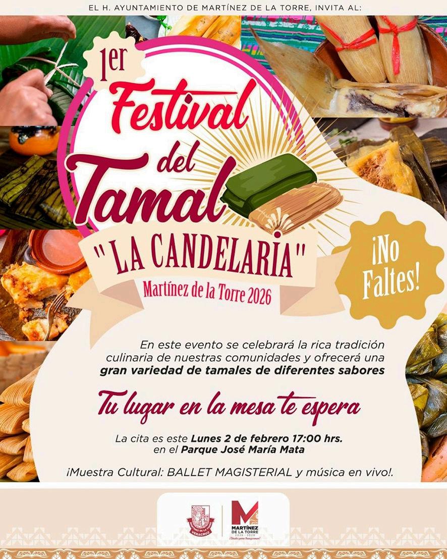 El Gobierno Municipal de Martínez de la Torre invita a la ciudadanía a disfrutar del Primer Festival del Tamal “La Candelaria”, un evento que