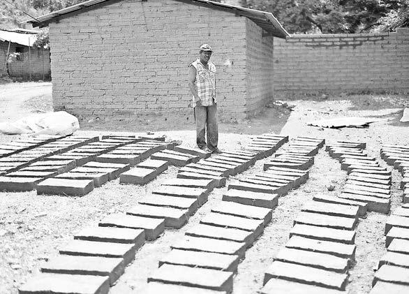 demorar de mes y medio o dos meses, dependiendo de las dimensiones de las casas. Todo inicia con la mezcla del barro con excremento de burro o chivo, además de pasto seco para elaborar unos mil bloques, unos 200 por día. Para 100 bloques se utilizan 7 costales de excremento, antes de mezclarse el barro debe estar bien cernido para lograr compactar al máximo. La elaboración del millar de bloques de barro para una casa pequeña puede tardar una semana y media.