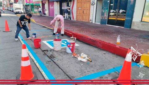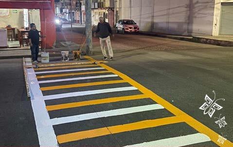 Con la finalidad de generar seguridad y funcionalidad a los pasos peatonales, así como para mejorar la imagen urbana del municipio, se han balizado puntos estratégicos de la cabecera municipal con señalamientos preventivos viales, donde participan personal de la Dirección de Movilidad Urbana, en coordinación con Tránsito Municipal, Protección Civil y Servicios Generales.