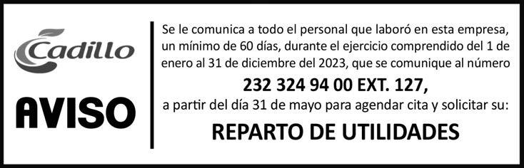 EL HERALDO DE MARTINEZ es una publicación diaria de lunes a sábado. Viernes 31 de Mayo de 2024 | Año 6 | No. 1919 | Editor responsable Ing. Eduardo Sánchez Macías. Número de certificado de Reserva de Derecho al Uso Exclusivo del Titulo 04-2017-090412182000-101. Certificado de Licitud 17081. Certificado de Licitud de Contenido 17081. Domicilio de la publicación, impreso y distribuido por Empresas Franes, S.A. de C.V., con domicilio en Boulevard Rafael Martínez de la Torre No. 168. Esq. 22 de Noviembre, Col. San Manuel, Martínez de la Torre, Ver., C.P. 93600. Tels.:(01 232) 324-85-46, 324-4676, 373-15-95, Fax 324-85-47