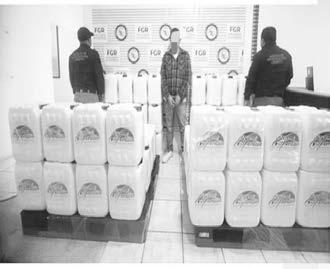 Lametanfetaminaeratransportada de manera ilegal y clandestina dentro de un cargamento de 64 bidones etiquetados como fertilizantes orgánicos, con un total de mil 280 litros de metanfetamina en su interior.