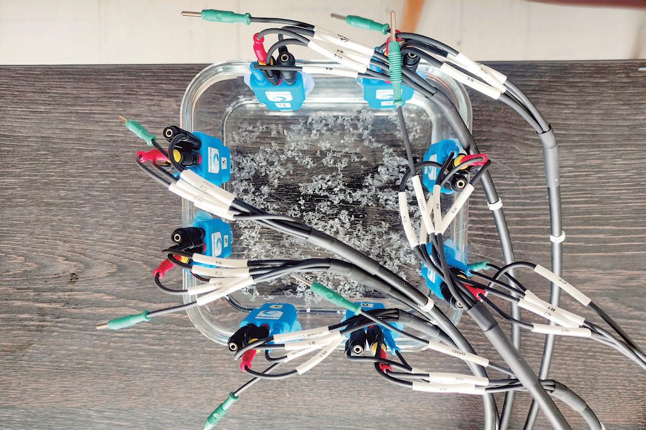 El siguiente paso fue incorporar esas muestras de agua en un recipiente especial en el que también se incluyen los sensores. Medir estos datos implica que los sensores envíen las señales eléctricas a un computador y así se registran las curvas de voltaje y corriente características de los microplásticos.