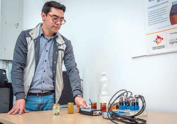 Juan Daniel Sarmiento Abello, magíster en Ingeniería Electrónica de la UNAL, autor de este estudio. Fotos: Nicol Torres, Unimedios.Juan Daniel Sarmiento Abello, magíster en Ingeniería Electrónica de la UNAL, autor de este estudio. Fotos: Nicol Torres, Unimedios. El sistema funciona con una red de sensores para detectar las diferentes propiedades de los microplásticos.El sistema funciona con una red de senso-