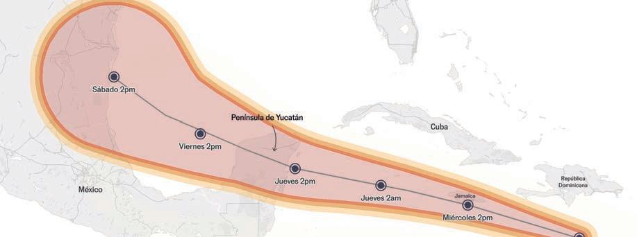 kilómetros por hora. Las alertas advierten que el sistema podría estar en categoría 4, como ahora, o en 5, la máxima, para su llegada a las Islas Caimán, la noche de este miércoles.