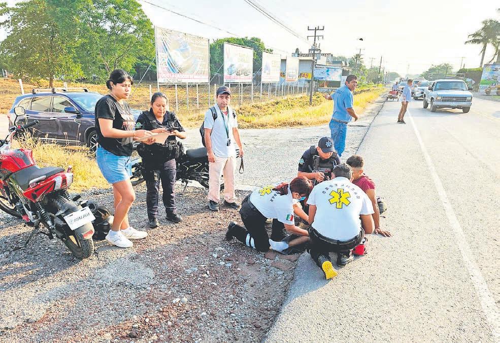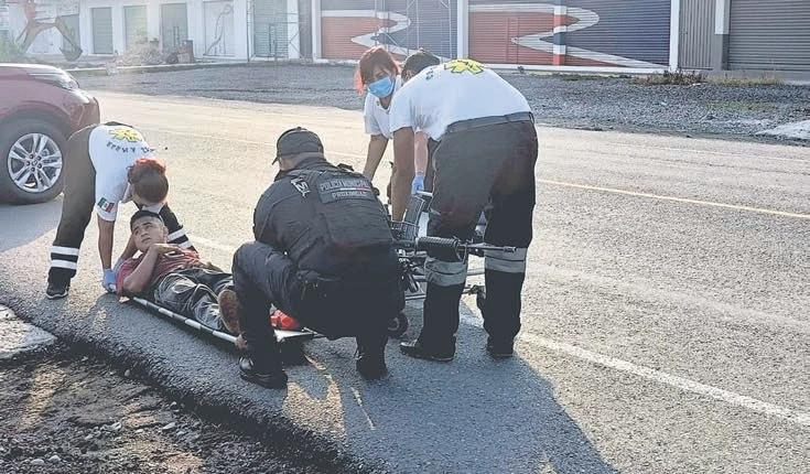 Con heridas abrasivas en rótula izquierda, tibia y peroné, y golpes leves, resultó motociclista al estrellarse en una camioneta que aparentemente le hizo corte de circulación.