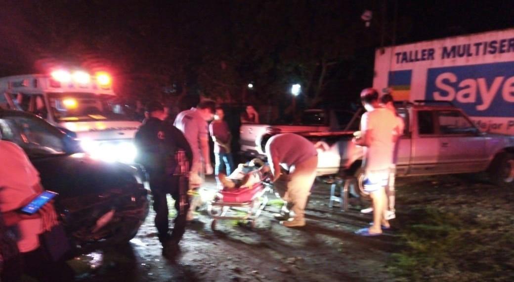 El accidente ocurrió a las 21:00 horas del jueves, frente a la colonia San Vicente, por donde el conductor de un vehículo marca Chevrolet, de la línea Cavalier, de color rojo, al manejar borracho, con exceso de velocidad, se estrelló contra una camioneta marca Ford, tipo Eco-Sport, en la que viajaba
