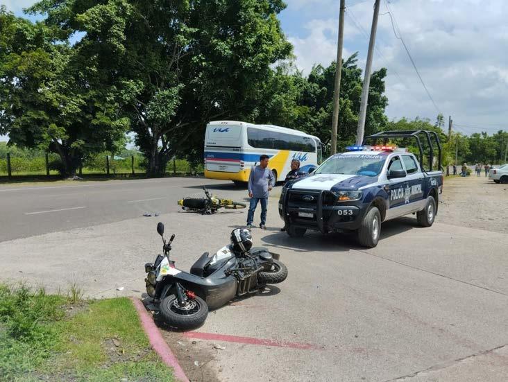 Tras el fuerte impacto ambas unidades de dos ruedas, quedaron tendidas sobre la cinta asfáltica y los lesionados de igual forma. Elementos de la Policía Preventiva Municipal al escuchar el fuerte golpe, salieron a investigar y al percatarse de lo sucedido abanderaron el lugar.