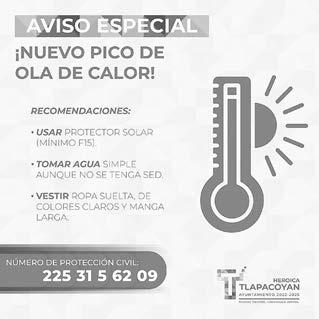 Las condiciones climáticas de altas temperaturas para el estado de Veracruz continúan siendo intensas, por ello el gobierno municipal que emana Salvador Murrieta Moreno, a través de la coordinación de Protección Civil, exhorta a las y los ciudadanos atender las recomendaciones para evitar golpe de calor.