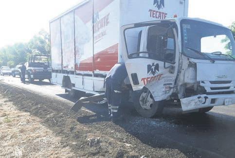 Fuerte encontronazo se registró la mañana de este miércoles sobre la carretera federal número 129, en el tramo Martínez-Tlapacoyan, a la altura de El Cortijo, lugar donde un camión de la empresa Cervecería Cuauhtémoc-Moctezuma, se impactó de frente contra un automóvil Sentra cuyo conductor manejaba de forma imprudente y le invadió su carril, autoridades de