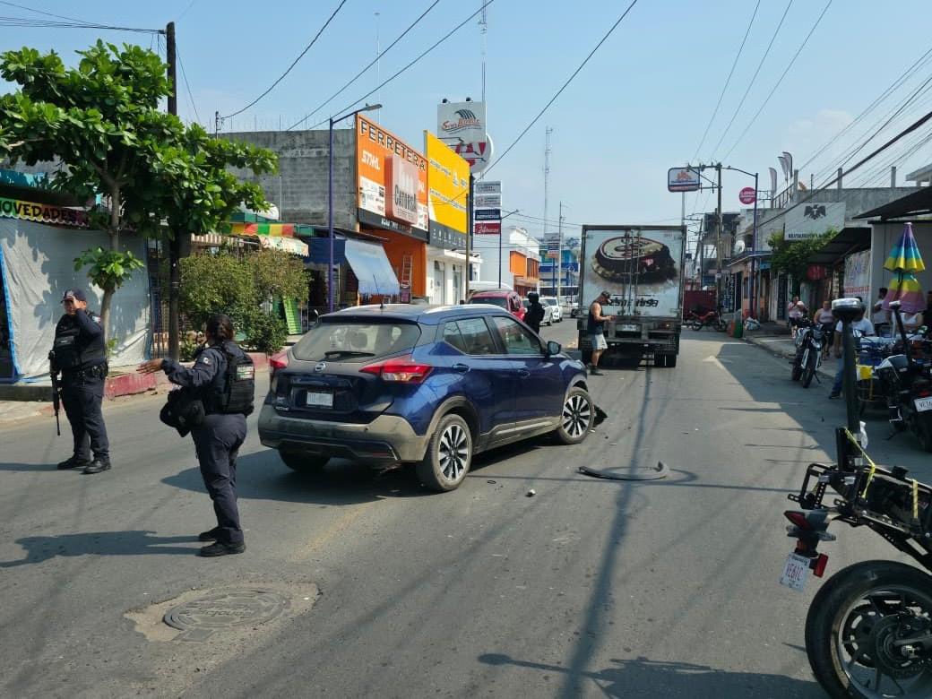 El incidente se registró alrededor de las 14:00 horas, cuando un camión tipo rabón propiedad de la Cervecera Cuauhtémoc Moctezuma circulaba sobre el citado bulevar con dirección hacia el centro de la ciudad. De acuerdo con los primeros reportes, sobre la calle Insurgentes circulaba una camioneta Nissan Kicks con placas del estado de Veracruz, conducida por una mujer, quien intentó incorporarse a la vía principal luego de que otro automovilista le cediera el paso de manera cortesía. Sin embargo, el operador del camión repartidor aparentemente no se percató de la maniobra y continuó su trayecto, lo que provocó que la conductora acelerara e impactara de forma lateral contra la unidad pesada, quedando enganchada la facia delantera de la camioneta, la cual terminó desprendiéndose casi en su totalidad.