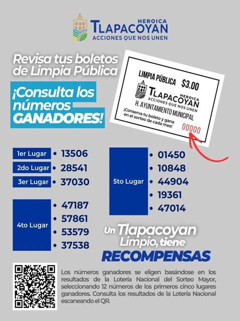 Las personas que cuenten con los folios ganadores pueden comunicarse al área de Atención Ciudadana al número 225 315 5505, extensión 1009, donde se registrarán sus datos para posteriormente informarles la fecha y el lugar donde podrán recoger sus premios. De igual forma, pueden acudir directamente al módulo de Atención Ciudadana en el Palacio Municipal para realizar este trámite. El Ayuntamiento informó que las rifas continuarán realizándose de manera periódica, por lo que se invita a la población a conservar todos los boletos que reciban al pagar su servicio de Limpia Pública, ya que podrán participar en próximos sorteos.