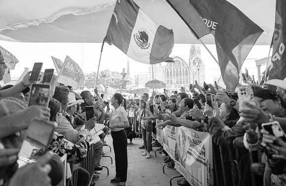 También desglosó otros ejes de su Proyecto de Nación, entre los que resaltó la conservación y fortalecimiento de la pensión de adultos mayores, las becas universales, la ampliación de preparatorias y acciones para garantizar el acceso a derechos como la salud, vivienda, educación y un
