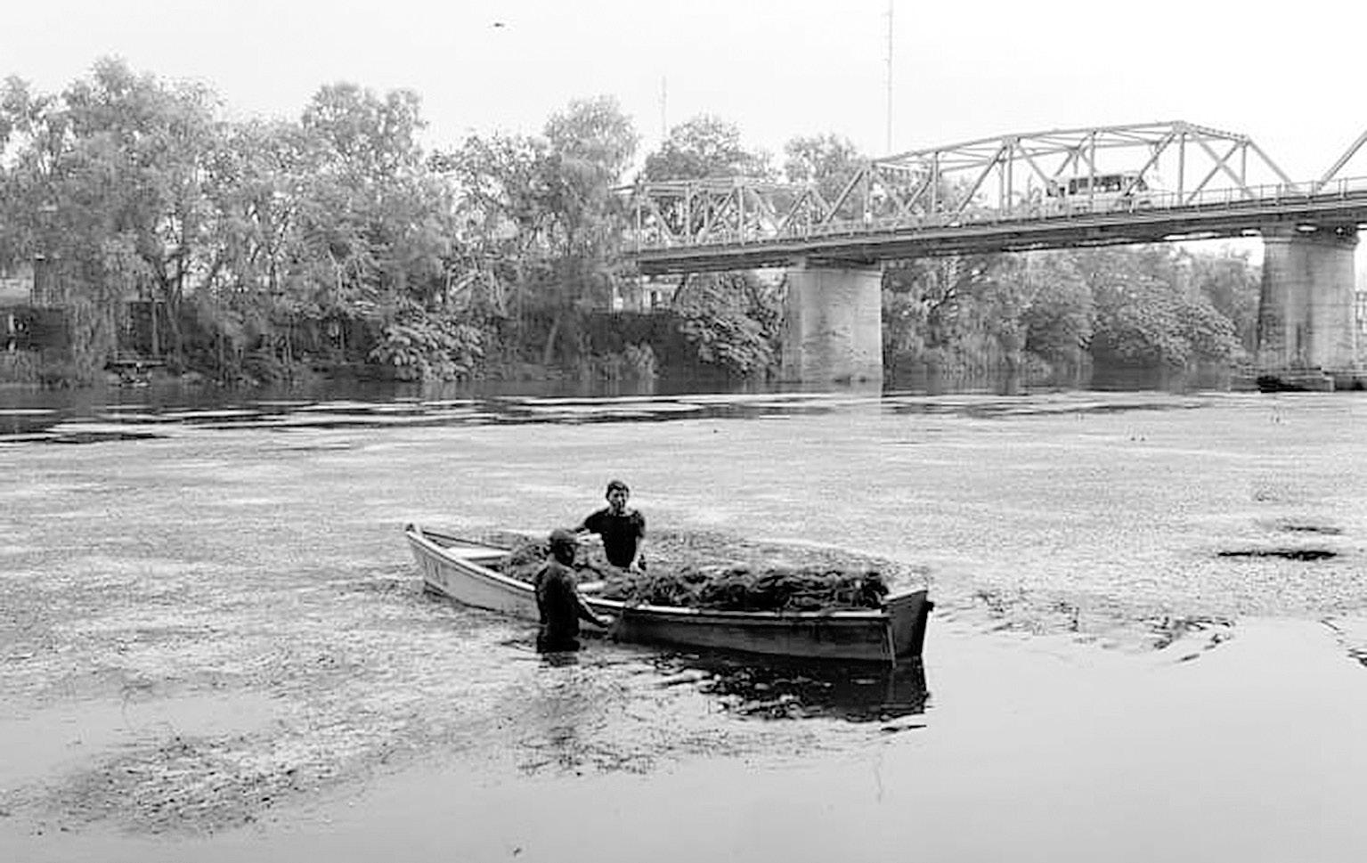 De cara al recorrido por el río Bobos con la imagen del Santo Patrono de Martínez de la Torre, San Juan El Bautista, pescadores de Villa Independencia se han dado a la tarea de retirar las algas de este importante afluente.