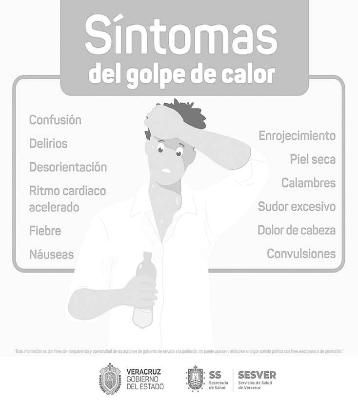 La nueva ola de calor que se reciente en la entidad veracruzana pone en riesgo a la población que puede sufrir, deshidratación o goles de calor, por lo que las autoridades de la Secretaría de Salud de Veracruz hacen un llamado a la población para reconocer los síntomas.