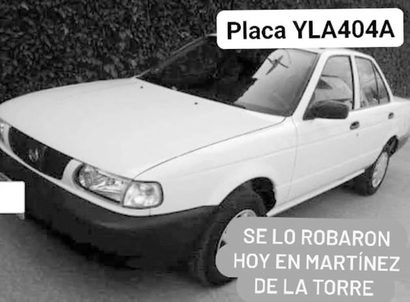 Ser trata del automóvil de la marca Nissan, tipo Tsuru, de color blanco, con placas YLA404A del estado de Veracruz, mismo que su conductora lo dejó estacionado sobre la calle Guerrero, entre las avenidas Llave y Zaragoza, donde al regresar se dio cuenta que había sido víctima de la inseguridad.