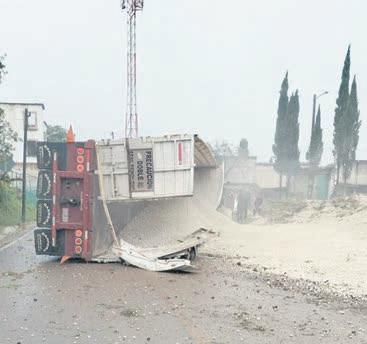 Como consecuencia de una probable falla mecánica, pesado camión se volcó sobre la carretera federal número 129, dejando como conse -