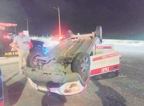 En el segundo percance el conductor de un Chevrolet Aveo color azul, se impactó contra un auto Renault Kwid habilitado como taxi con número económico 2241, la unidad de alquiler terminó volcada luego de que recibió el golpe.