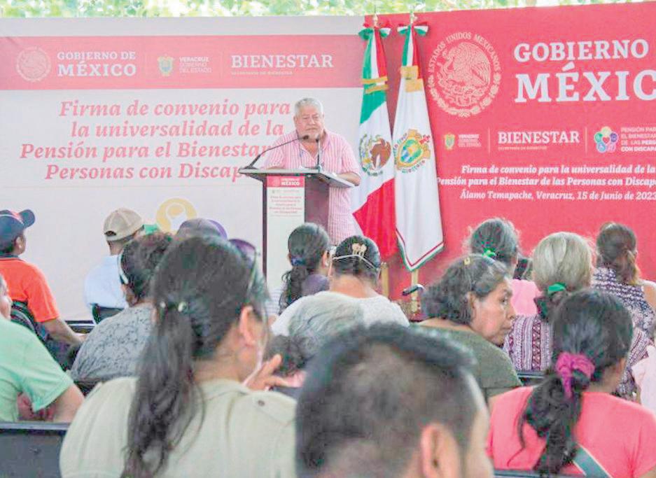 Uno de los principales compromisos del Gobierno Federal con la población veracruzana se hace realidad tras la firma de convenio entre la Secretaría de Bienestar y el Gobierno del Estado, mediante el cual se logra contar con los recursos económicos suficientes para otorgar una pensión bimestral a todas las personas con alguna discapacidad. Este jueves reunidos en este municipio del norte del Estado de Veracruz, donde el pasado fin de semana el Presidente, Andrés Manuel López Obrador, acordó con el gobernador, Cuitláhuac García Jiménez, el apoyo bipartita; hoy se formaliza la colaboración peso a peso para beneficiar a más de 20 mil personas que requieren de este importante programa social en la entidad veracruzana.