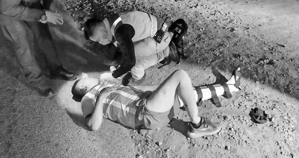 pos de emergencia quiénes le brindaron la atención prehospitalaria a una de las víctimas que sobrevivió al ataque armado, presentó tres impactos de bala, uno en una pierna, otro en el glúteo y uno presuntamente en la cabeza.