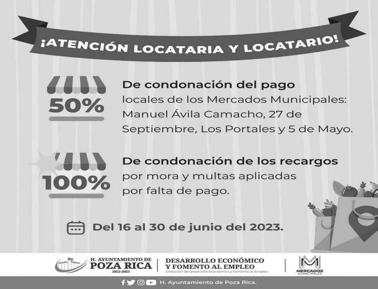Con el objetivo de promover el crecimiento y fortalecimiento de los negocios locales, el Ayuntamiento de Poza Rica que preside el alcalde Fernando Remes Garza, a través de la Dirección de Desarrollo Económico y Fomento al Empleo, hace un llamado a empresarios del municipio para que aprovechen las condonaciones de pago en materia de anuncios, medio ambiente, protección civil, salud y tránsito, que estarán vigentes hasta el 30 de junio de 2023.