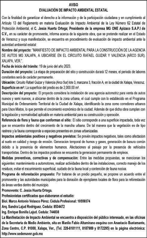 Jueves 22 de Junio de 2023 .25 ESTATAL | elheraldodepozarica.com.mx | Jueves 22 de junio de 2023 | elheraldodexalapa.com.mx | LOCAL EL HERALDO DE XALAPA .05 Primera Sección