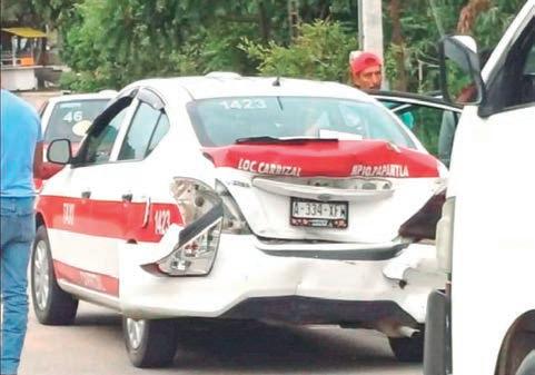 Cuatro personas lesionadas, entre ellos una menor, dejó un choque entre un taxi y una camioneta, en Papantla. PASE A LA 21