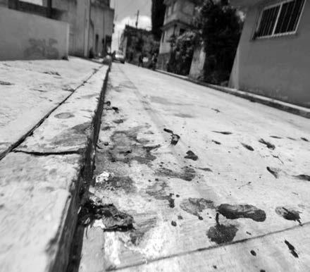 Mientras tanto en la entrada a la vivienda se pueden ver cuantiosas manchas de sangre como testigo del crimen.