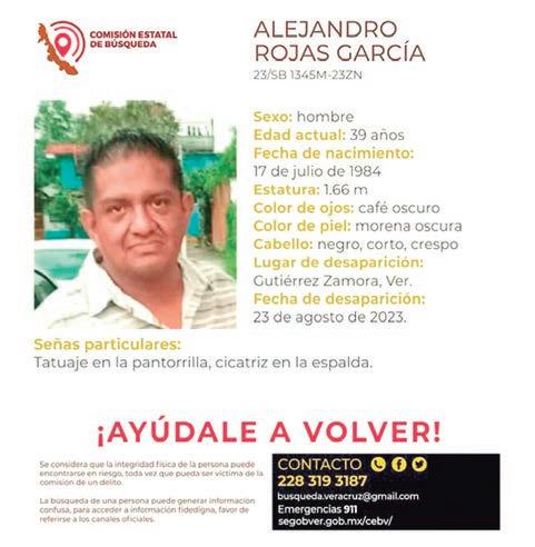 La ficha 23/SB 1331U-17ZC reporta la desaparición de Librado Rebollo Zepeda, de 58 años de edad, con quien se perdió contacto en 2017 en Xalapa, Veracruz