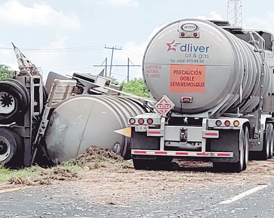 Autotanque cargado con 30 mil litros de gasolina, volcó en la autopista México-Tuxpan, entre las comunidades de Ceiba Rica y Tierra Blanca, específicamente en el kilómetro 251, lo que representó un verdadero riesgo para los automovilistas ante una posible explosión.