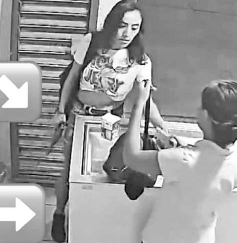 En un video que se difundió en redes sociales, así como fotografías se estableció que la delincuente vestía short de mezclilla azul, una playera blanca con estampados en rojo al centro, así como una mochila color negra.