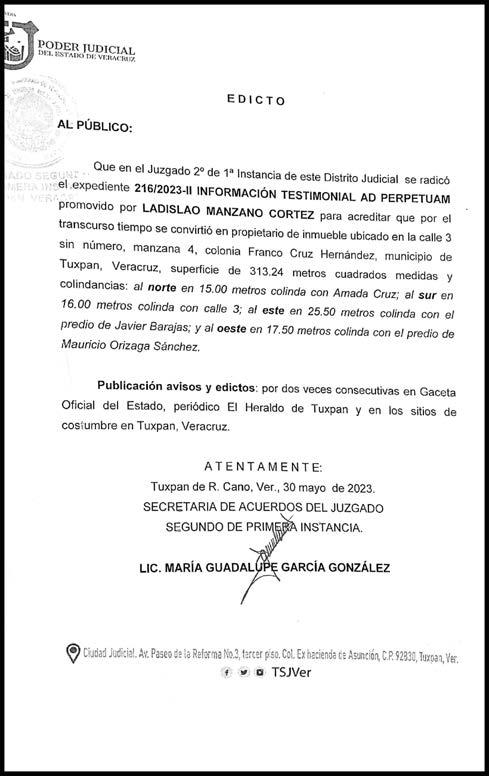 Jueves 31 de Agosto de 2023 .31 TAMIAHUA | elheraldodepozarica.com.mx | Jueves 31 de Agosto de 2023 .7 TAMIAHUA | elheraldodetuxpan.com.mx | Primera Sección