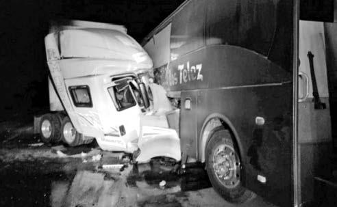 Tráiler con caja seca choca contra autobús de grupo musical, hay dos fallecidos, en Acatzingo. PASE A LA 23