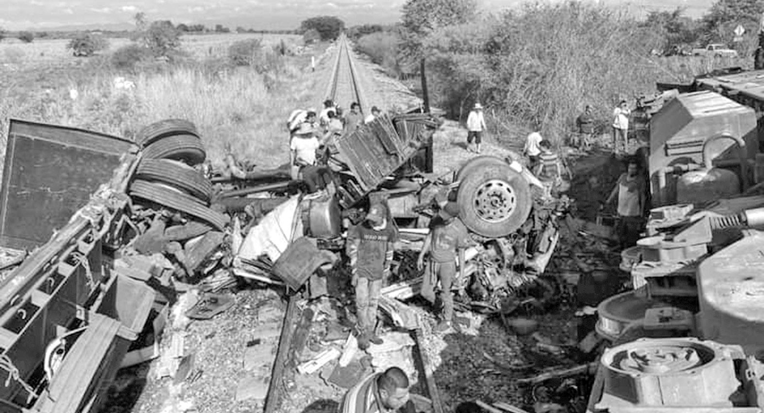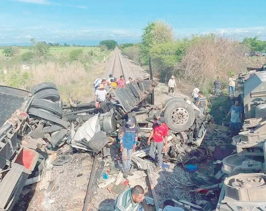 Por querer ganarle el paso, tren arrastró a tráiler en el ferrocarril; en el cruce de Camarón de Tejeda.